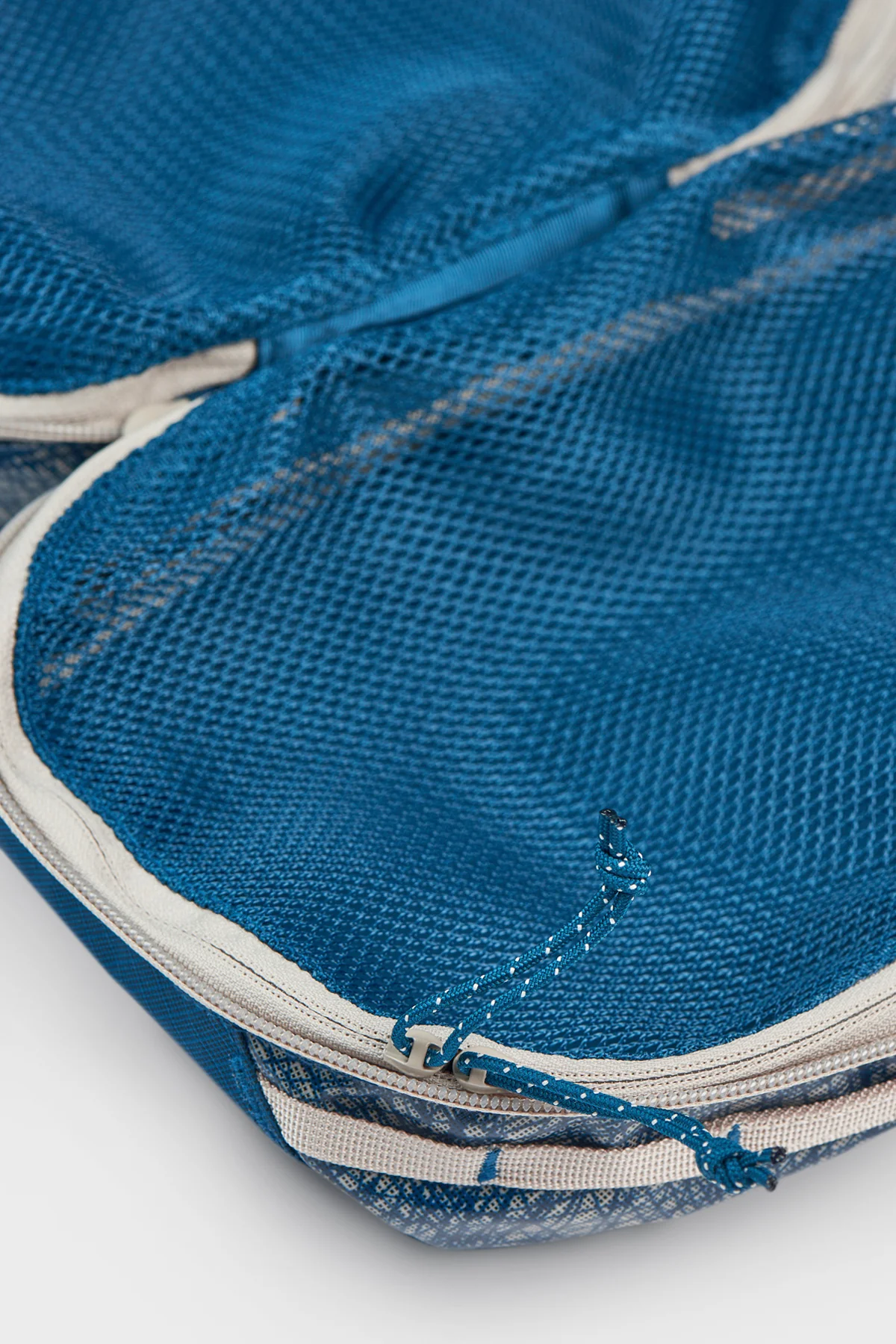 - Compartiment principal divisé en pochettes de volume égal par des cloisons de séparation zippées en mesh.